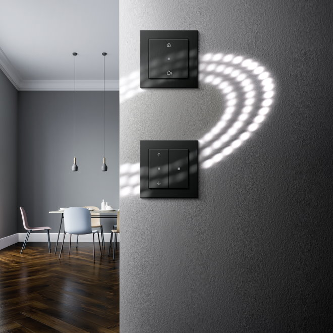 Mit unserer Jalousiesteuerung können Sie Ihre Jalousien bequem per Knopfdruck oder automatisch steuern. Sie haben jederzeit die volle Kontrolle über Lichtverhältnisse und Raumklima, und das ganz einfach über Smartphone, Tablet oder ein zentrales Steuerungssystem. Die Jalousiesteuerung bietet Ihnen mehr Komfort, schützt Ihre Privatsphäre und optimiert gleichzeitig die Energieeffizienz in Ihrem Zuhause.